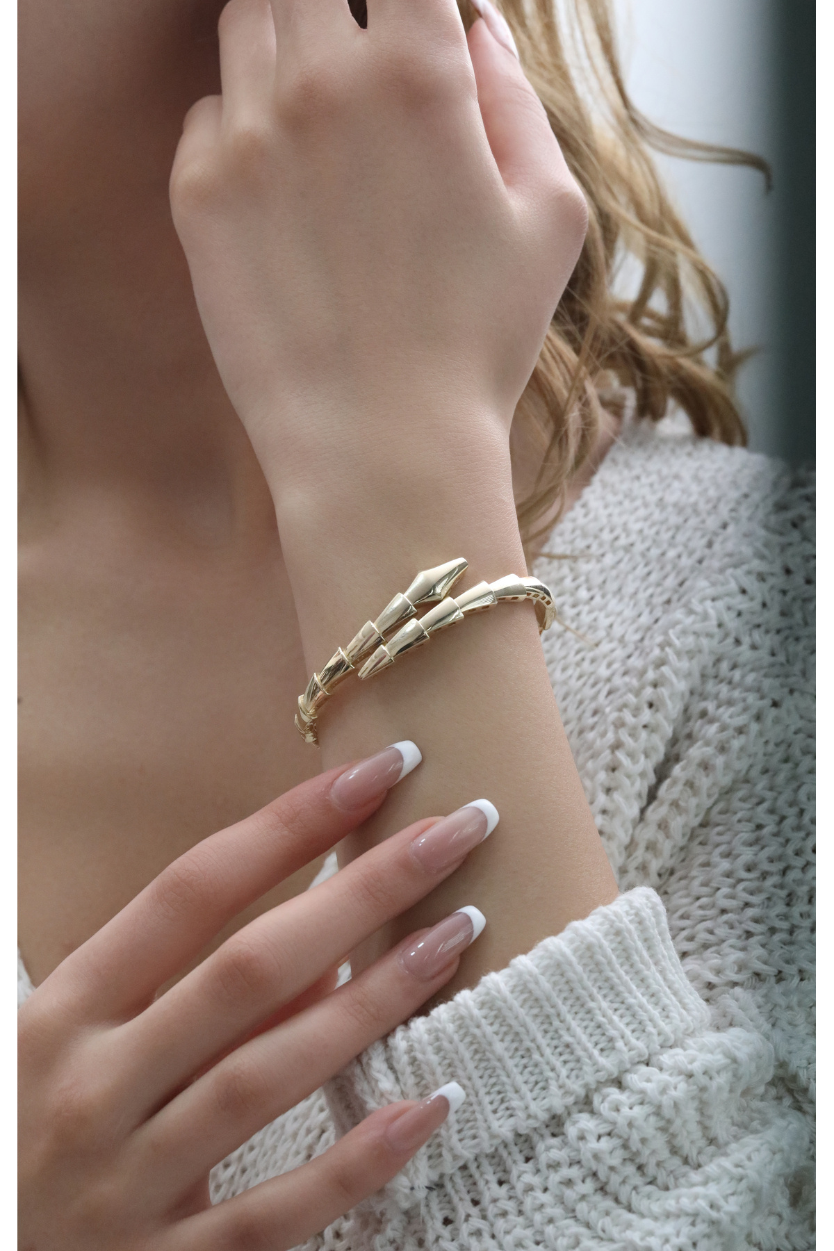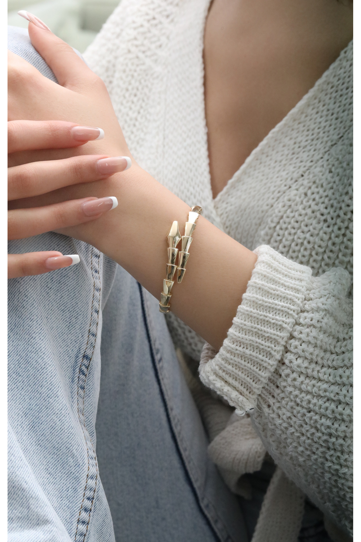 Bu şık bileklik, hem günlük kullanımda hem de özel günlerinizde kombinlerinizi tamamlayan modern ve zarif bir aksesuar olarak ön plana çıkar.