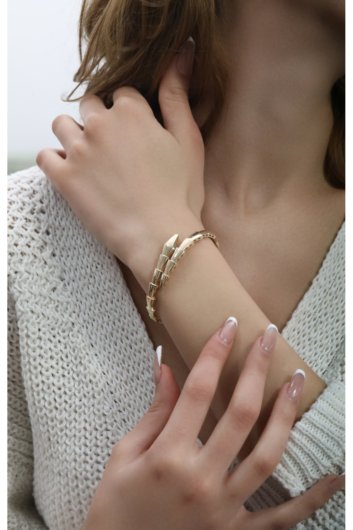 14 Ayar Altın Linee Decise Kelepçe Bileklik, Anneye Eşe Sevgiliye Hediye